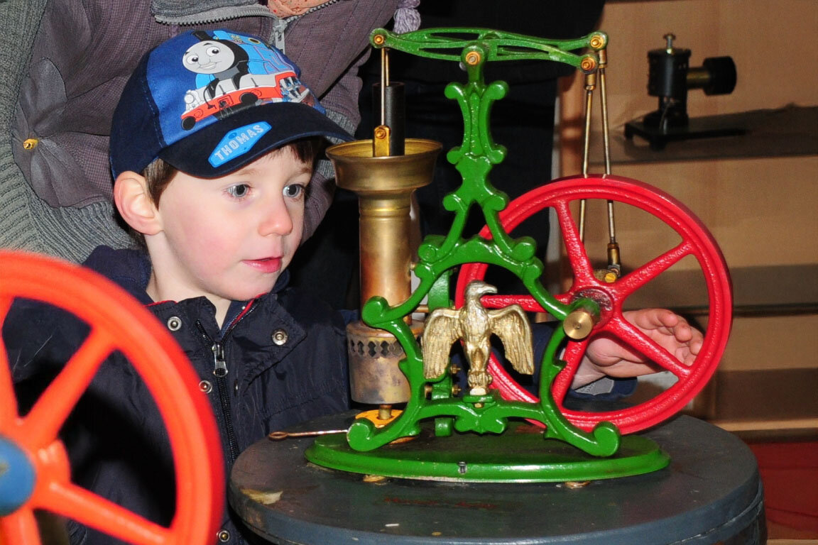 Neben einer kleinen Exposition von sehr schönen alten gusseisernen Öfen, Kaminplatten, alten Maschinen sowie einer Schmiededarstellung werden auch funktionstüchtige Modelle von Heißluftmotoren vorgeführt.