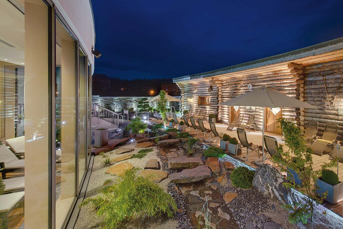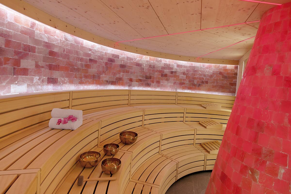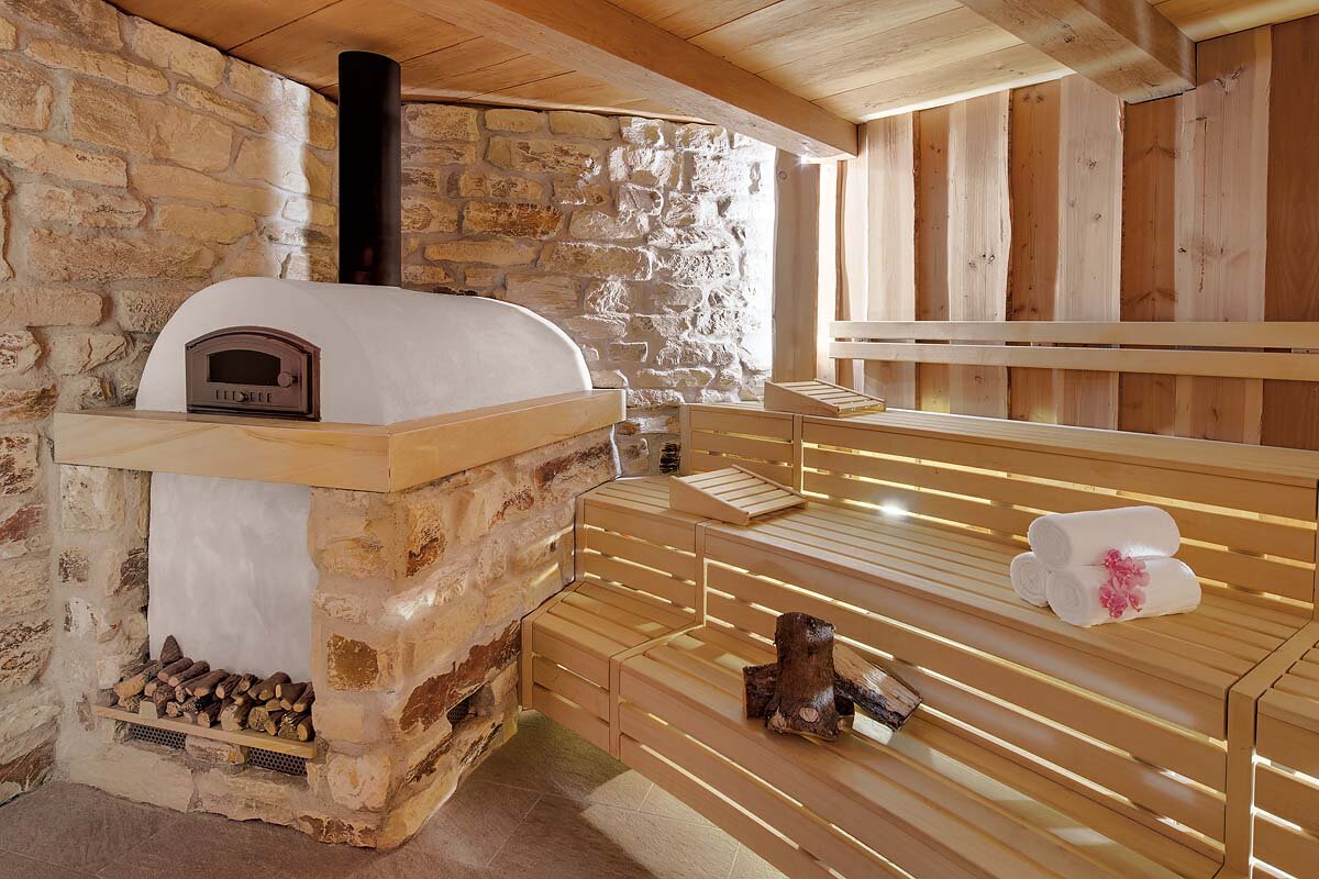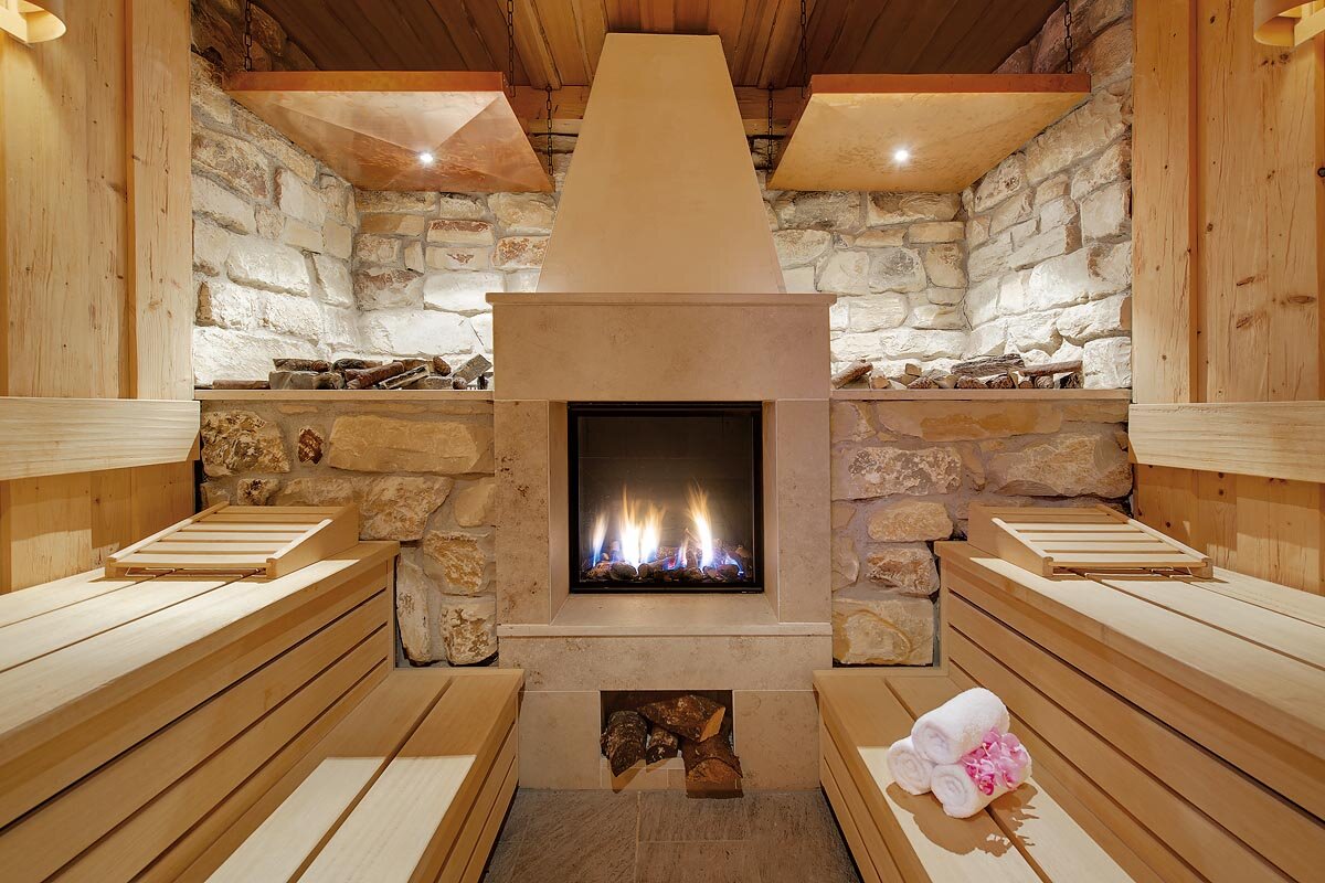 Warme Farben und natürliche Materialien, eine Lounge mit Kamin und feinem Teakholzboden umrahmen die Saunen unserer Wellness-Oase. Acht verschiedene Saunen laden zum Erholen und Genießen ein.