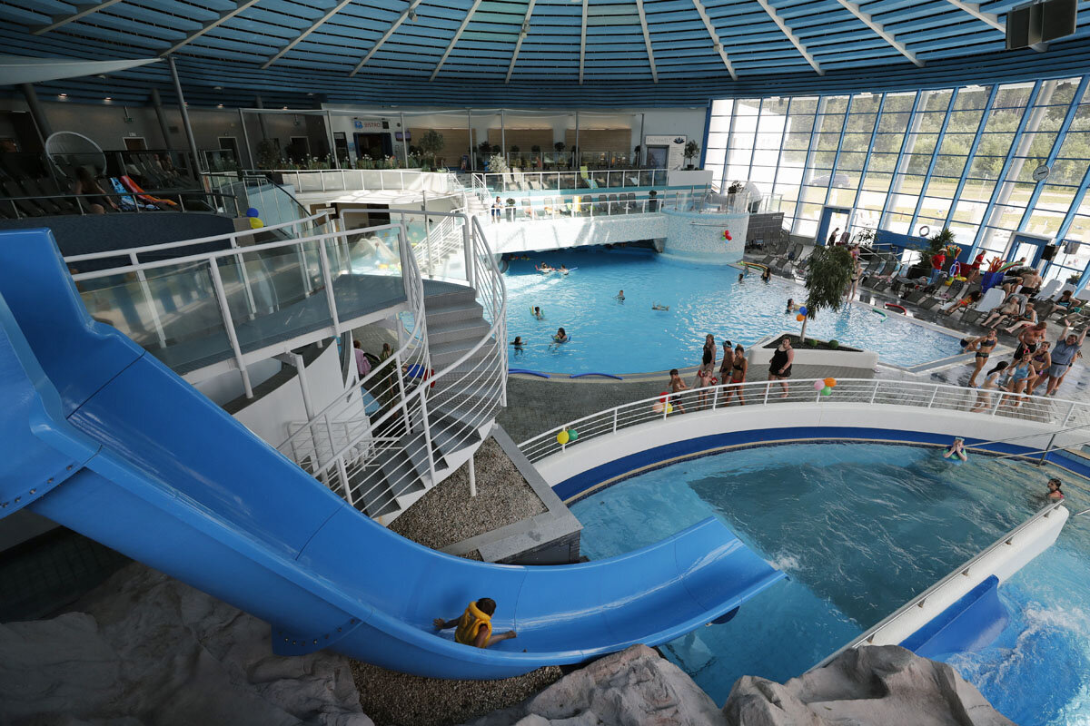 Kleine Gäste können ihren Tag im Babybecken und auf dem Innenspielplatz mit Kletterturm genießen. Im Außengelände erwartet Sie das beheizbare Schwimmbecken, ein Wasserspielplatz, eine Liegewiese, ein Beachvolleyballplatz und ein Kinderspielbereich.