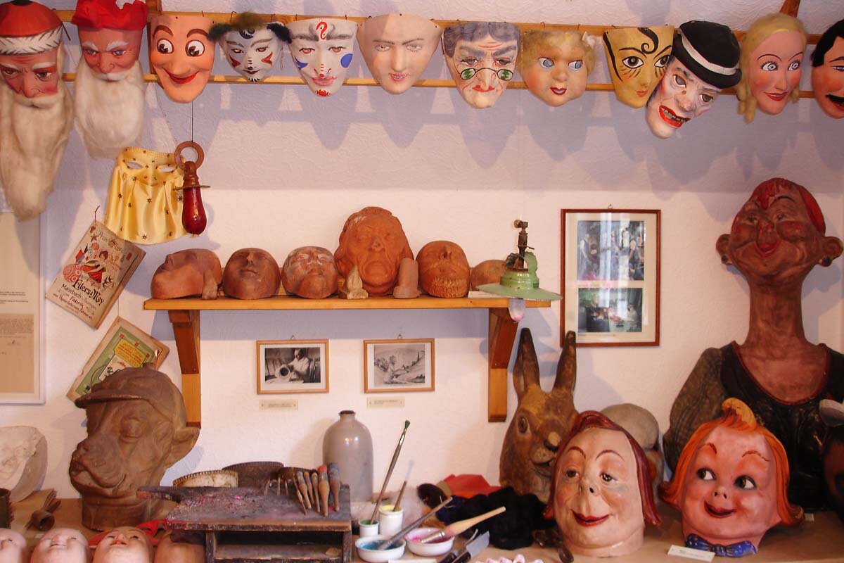 Anfang des 19. Jahrhunderts kamen durch Fuhr- und Kaufleute Muster von Papiermaché - Masken von Sonneberg nach Manebach. Papier war dank zahlreicher Papiermühlen im Thüringer Wald reichlich vorhanden. 1832 wurde von W. Eilers und Chr. Mey die erste Maskenfabrik in Manebach gegründet. Die zweite Maskenfabrik gründeten A. Heintz und K. Kühn im Jahre 1859. Beide gaben den Einwohnern Manebachs für 150 Jahre Lohn und Brot, wenn auch die Einkünfte gering waren. Manebacher Masken und diverse Karnevalsartikel gingen in alle Welt, Manebach wurde die "Werkstatt des Prinzen Karneval" genannt. Aufgrund von Materialmangel und Absatzschwierigkeiten wurde 1960 die Produktion bei Heintz & Kühn eingestellt; 1971 folgte das betriebliche Ende für Eilers & Mey.