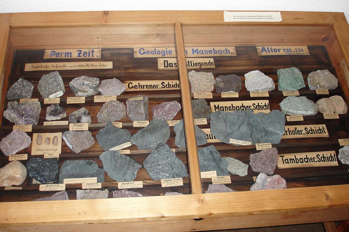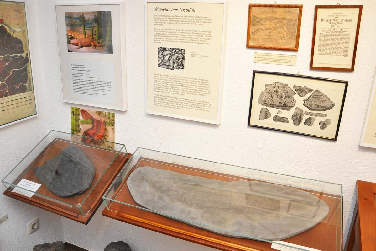 Manebach im Ilmtal ist die Geburtsstätte der PALÄOBOTANIK – der Lehre von den fossilen Pflanzen. Einziges bedeutendes Vorkommen Mitteleuropa, wird hier seit ca. 300 Jahren wissenschaftlich beobachtet, gesammelt und geforscht. 1695 stieß der Bergwerksunternehmer F. Heyn auf sehr gut erhaltene Pflanzen aus dem Perm, vorwiegend Farne und Schachtelhalme. 1709 erschienen erste Abbildungen von Manebacher Fossilien in "Des unterirdischen Sachsens seltsame Wunder der Natur" (G.F. Mylius), und J.J. Scheuchzer übernahm diese in seinem "Herbarium diluvianum". Erste wissenschaftliche Bearbeitung und Benennung erfuhren die Manebacher Fossilien zwischen 1804 und 1820 durch E.F. v. Schlotheim. Auch Johann Wolfgang von Goethe befasste sich intensiv mit dieser Wissenschaft und sammelte selbst mit dem Bergrat Mahr zahlreiche Fundstücke. Fossilien aus Manebach sind in vielen naturkundlichen Museen der Welt zu sehen. Die wichtigsten Fundstellen um Manebach sind als Flächennaturdenkmal ausgewiesen.
