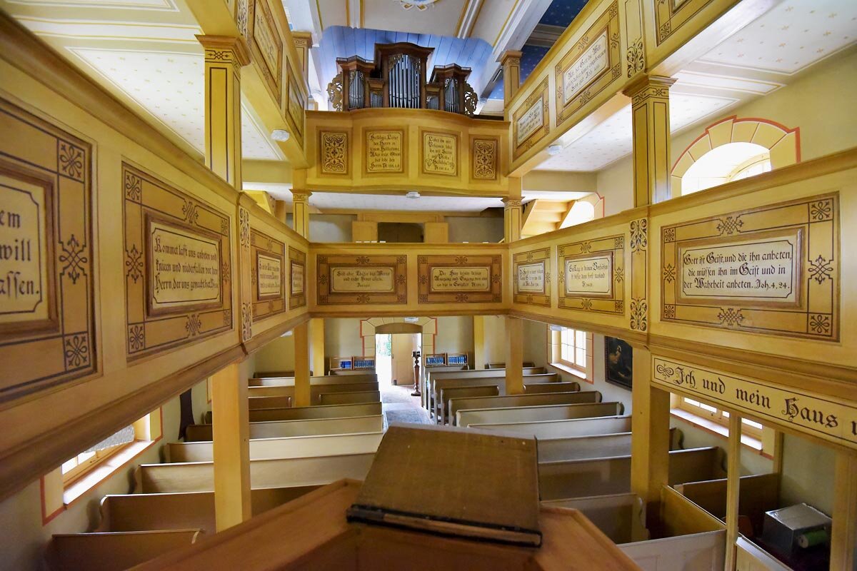 Der Kirchenraum selbst ist Träger der biblischen Botschaft. Martin Luther meinte, nur das Wort Gottes heilige den Ort. Die Ausmalung der Kirche mit Bibelsprüchen nutzt die Schrift als Schmuck und als Mittel der Erbauung und Belehrung. In den 2000er Jahren sicherten die Restauratoren Sabine und Friedrich Rittweger sorgfältig die Ausmalung. Die Verbindung von Schrift, Ornament und Bild befriedigt das menschliche Schubedürfnis und folgt der evangelischen Wertschätzung des Wortes bei der Verkündigung des christlichen Glaubens.