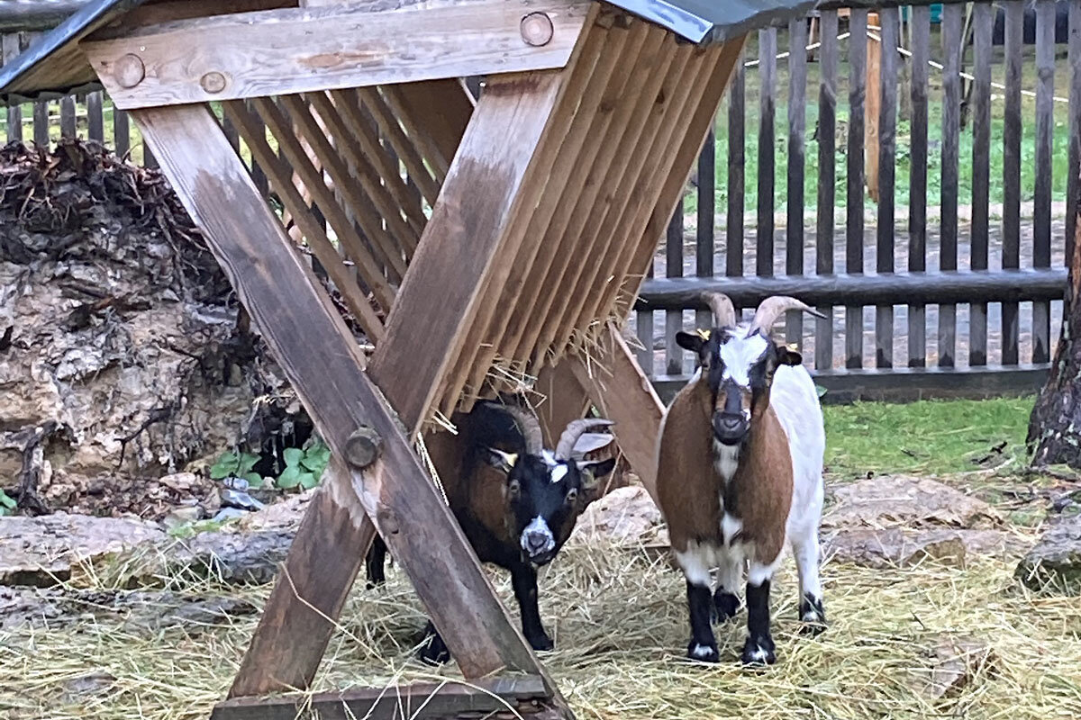 Zu den speziellen Attraktionen im Park gehört natürlich auch das Streichelgehege. In großzügigen Anlagen tummeln sich hier Westafrikanische Zwergziegen, schwarze Minischafe und winzige Schweine. Hier kann nach Herzenslust gestreichelt werden. Auch das Streichelgehege ist ohne Eintritt begehbar.
