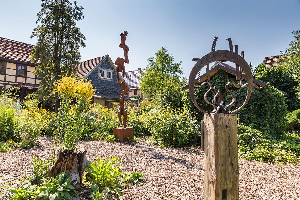 Zum 1826 erbauten Wohnhaus mit Scheune, Schlosserwerkstatt und Innenhof gehört noch ein langgestreckter Bauerngarten. In der ehemaligen Scheune befinden sich heute ein ebenerdiger Raum für wechselnde Ausstellungen, darüber 2 Atelierräume, die von unterschiedlichen Zirkeln genutzt werden. Ein besonderer Höhepunkt ist das jährliche, am 2. Sonntag im September stattfindende Schmiedefest mit Schauschmieden im Innenhof.