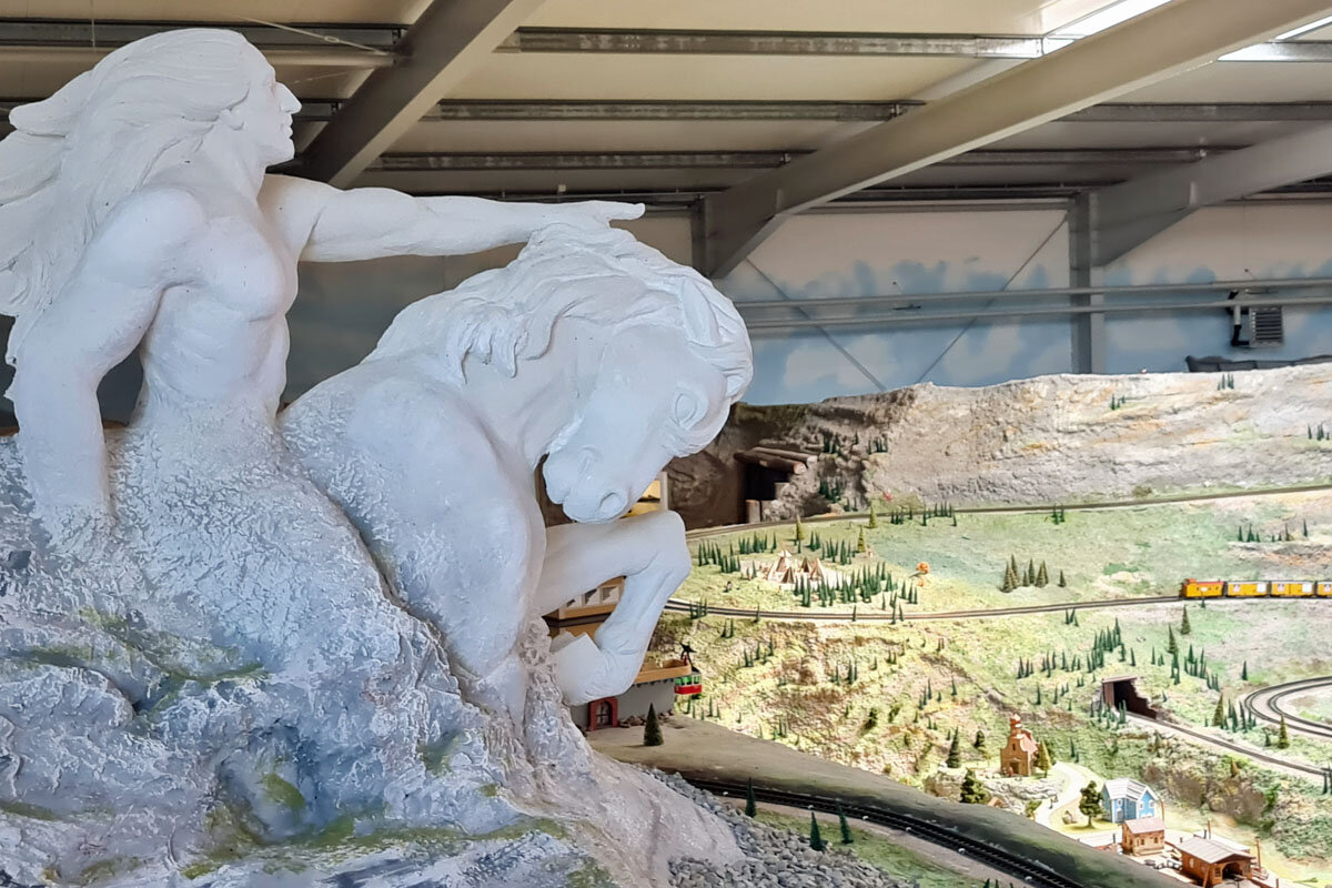 Von Ost nach West geht es in einer weiteren Ausstellungshalle. Begeben Sie sich auf Reise durch die amerikanische Eisenbahngeschichte. Dabei geht es vorbei an den Wolkenkratzern und der Freiheitsstatue von New York, den Präsidenten am Mount Rushmore National Memorial und dem Indianerhäuptling Crazy Horse. Die Geschichte der Indianer in den USA wird in einer Sonderausstellung mit über 5.000 bemalten Zinnfiguren dargestellt.