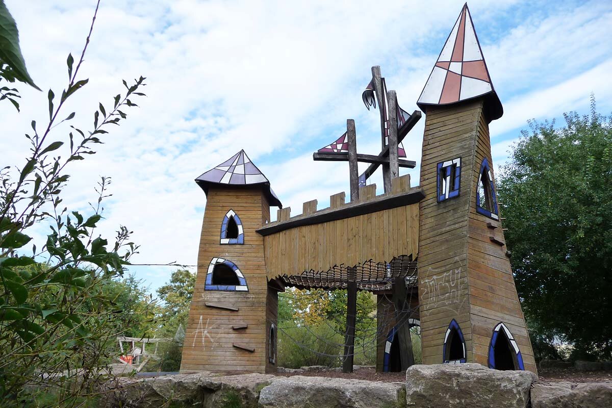 Einen der schönsten Spielplätze der Stadt findet man ebenfalls auf dem Petersberg. Hier bietet eine große Ritterburg alle Möglichkeiten des Spielens, Kletterns und Tobens.