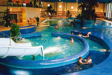 Herzlich Willkommen im Ottilienbad im Congress Centrum Suhl. Das wunderschöne Erlebnisbad bietet für die ganze Familie jede Menge abwechslungsreiche Attraktionen. Die Besucher erwartet ein großes Becken mit einer angenehmen Wassertemperatur von 28 Grad , Wasserrutsche und Strömungskanal, Sprudelliegen, Massagedüsen, Whirlpool, Ruheinsel und 50 Meter Schwimmbahnen - hier können Hobby- und Sportschwimmer ihre Bahnen ziehen.