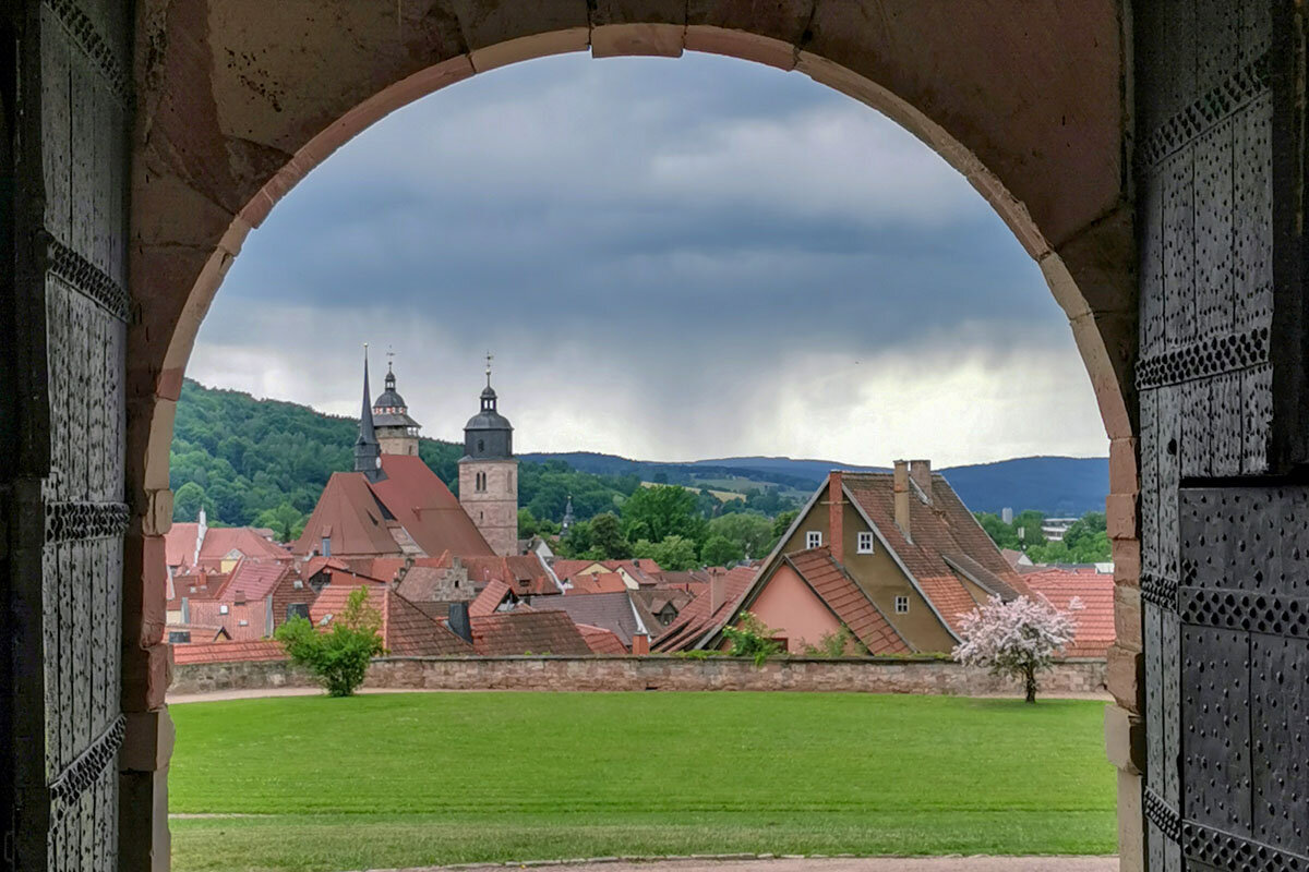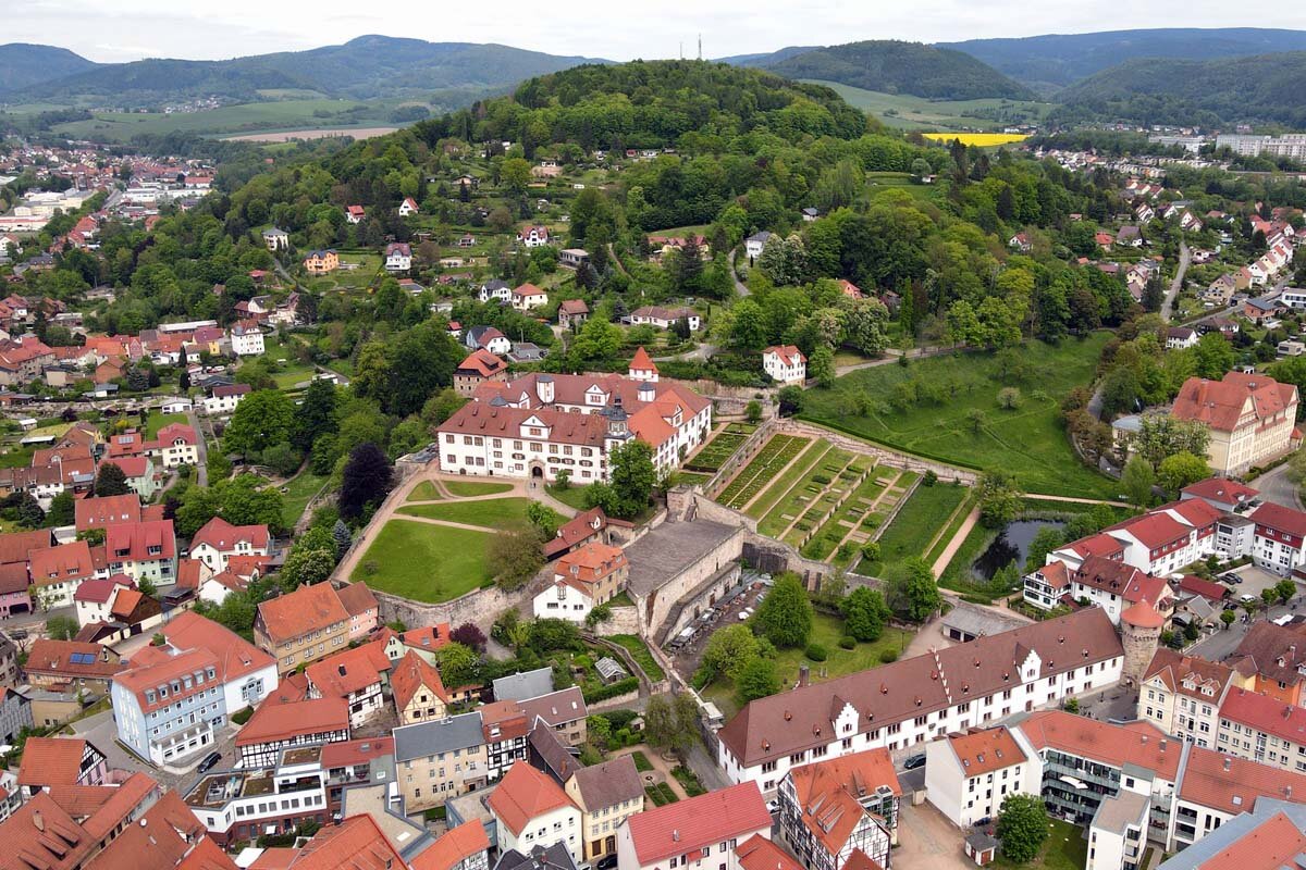 Wahrzeichen von Schmalkalden ist das über der Stadt gelegene Schloss Wilhelmsburg, erbaut vom hessischen Landgrafen Wilhelm IV. (1585-1590).
