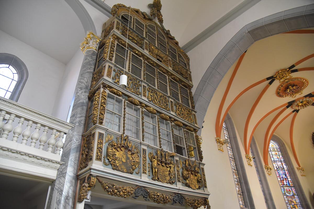 An Stelle der 1608 abgerissenen Andreaskirche wurde bis 1620 die Trinitatiskirche errichtet, die bereits im Folgejahr wieder abbrannte. Der Wiederaufbau unter wesentlicher Beibehaltung des barocken Baukörpers verzögerte sich durch die Wirren des Dreißigjährigen Krieges und die folgende wirtschaftliche Notlage bis 1691.