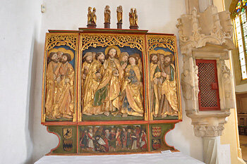 Ein wesentlicher Stifter für die neue Kirche war Dr. Kilian von Bibra, Domprobst in Würzburg. Nach seinem Tod im Jahr 1494 wurde sein Werk durch Lorenz von Bibra weitergeführt. Schon 1495 wurde dieser Lorenz zum Bischof von Würzburg gewählt. Er hatte dieses Amt bis zu seinem Tod im Jahr 1519 inne. Während seiner Amtszeit hatte er natürlich mit der Ausstattung von Kirchen zu tun. Es liegt nahe, dass er für die neue Kirche im Stammort seines Geschlechtes einen bekannten Künstler beauftragte.