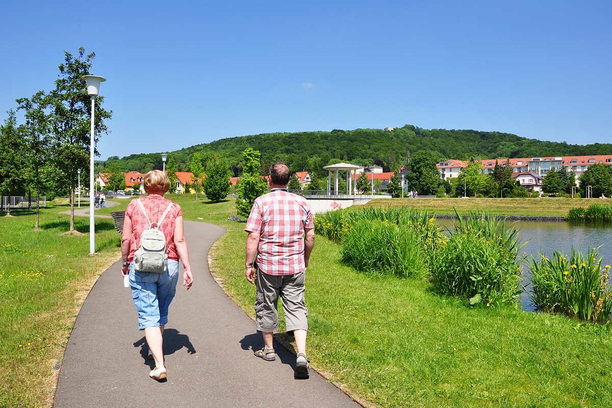 Der Stadtpark ist eingebettet in eine Auenlandschaft, in der sich Vegetations- und Wasserflächen abwechseln. Eine interessante Perspektive bietet besonders der Pavillon am Vorsprung des oberen Teiches. Die jungen Seerosen wachsen zu Sehenswürdigkeiten heran. Der Stadtpark hat Anbindungen an verschiedene Stadtteile von Bad Liebenstein und ist Teil des barrierefreien Rundweges der Stadt.