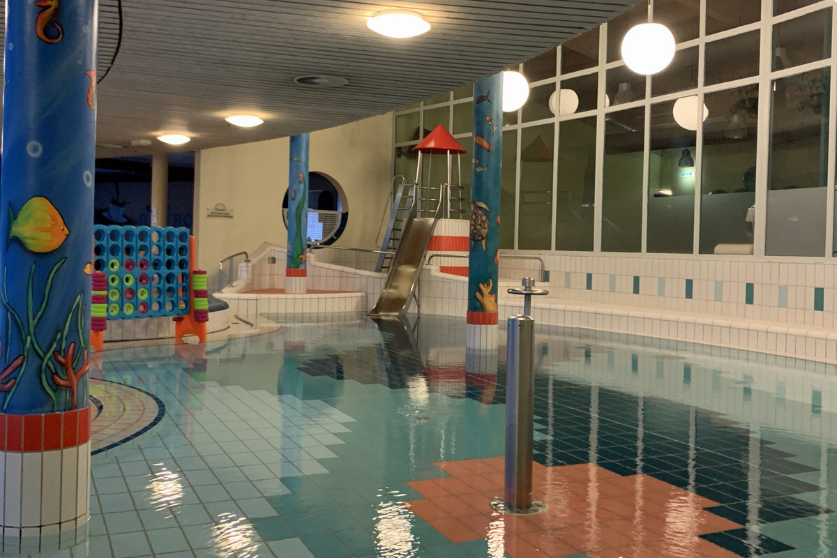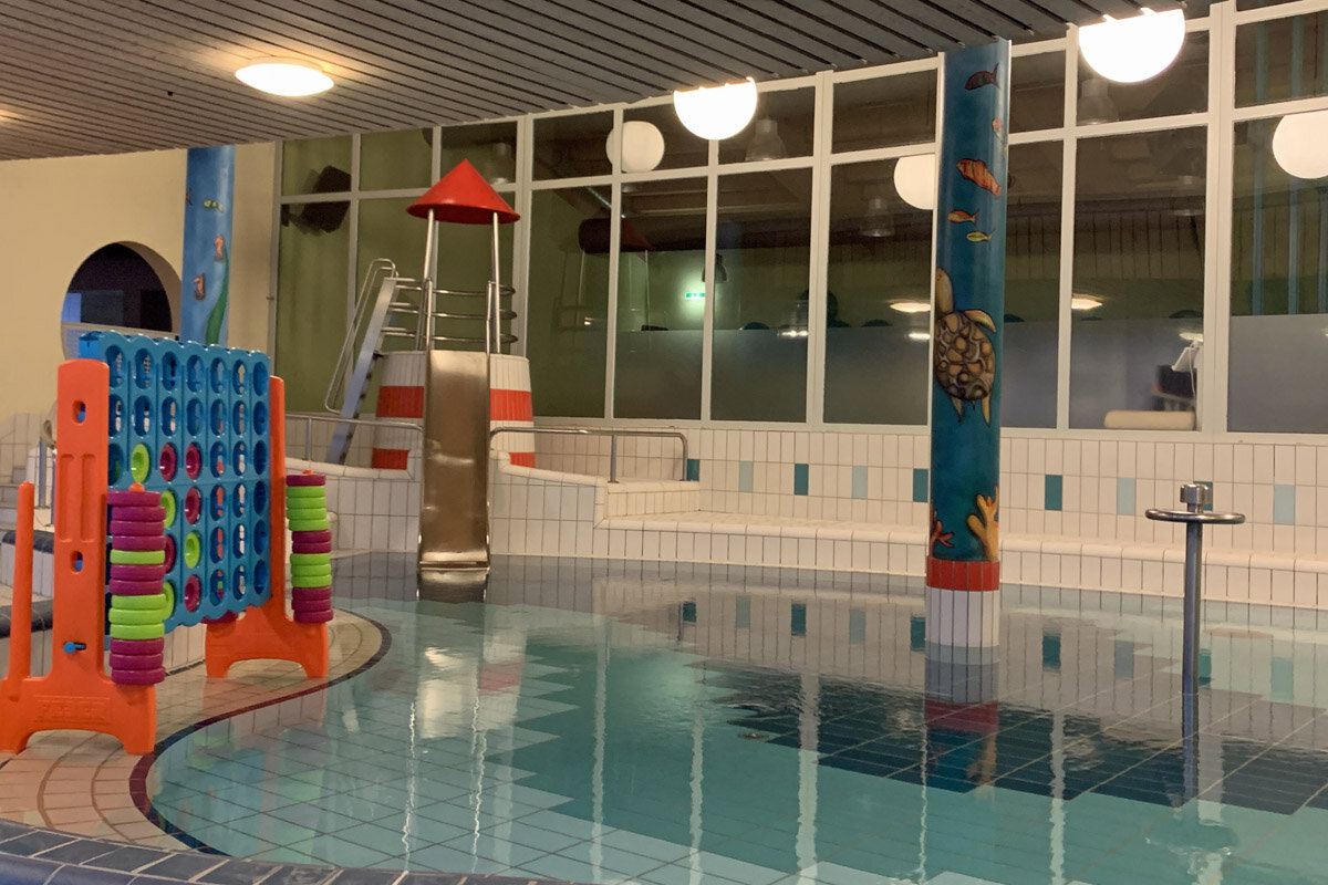 Im 1,35 m tiefen und 30°C warmen Erlebnisbecken kommen Sie voll auf Ihre Kosten! Wasserspeier, Massagedüsen, Bodensprudler, entspannende Whirlliegen, ein großer Strömungskanal sowie mehrere, speziell für Schwimmbäder entwickelte, Reifen und „Bananen“ bieten so einige Möglichkeiten der Unterhaltung für Groß und Klein.
