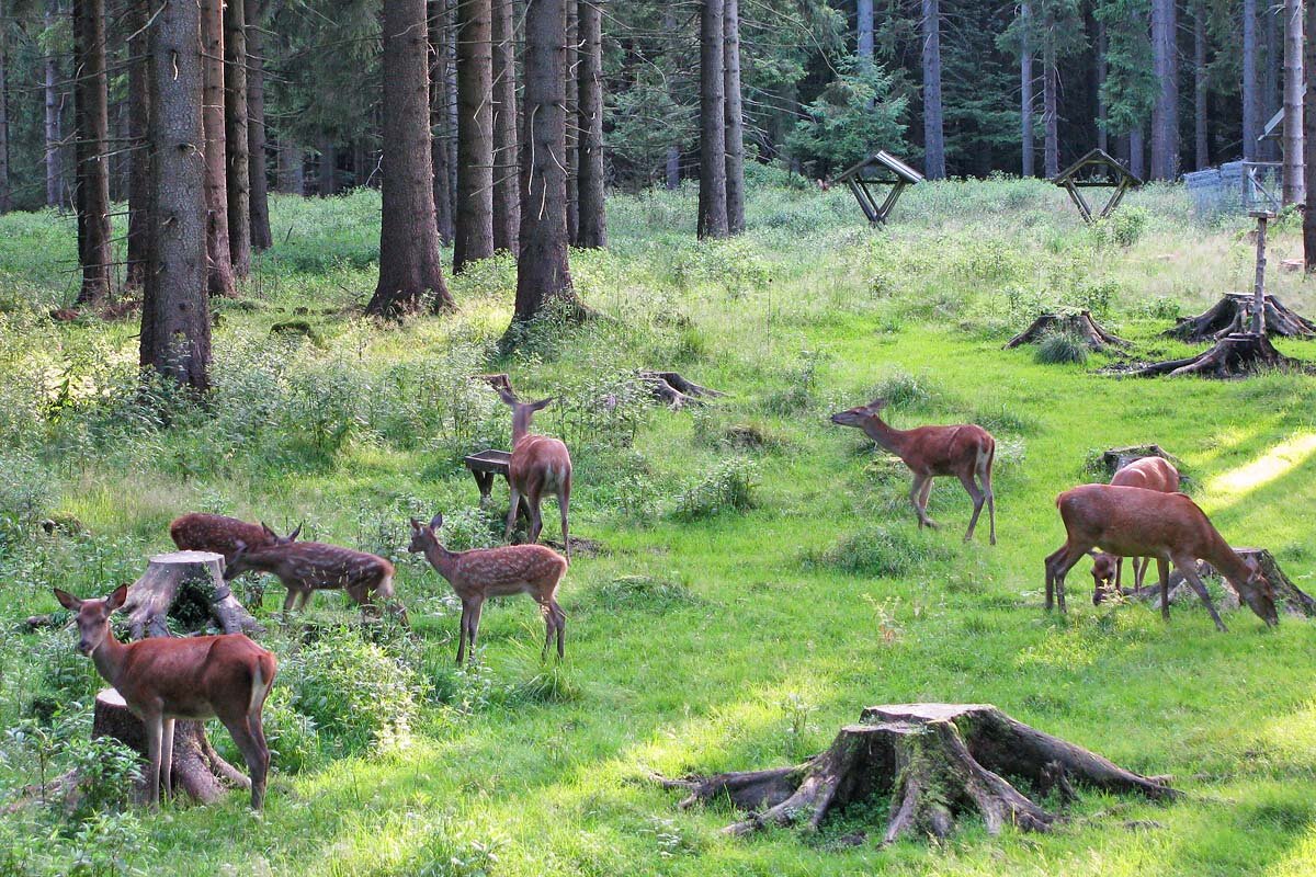 Von einer großen Beobachtungskanzel kann man vor allem unsere größte heimische Wildart, den Rothirsch "hautnah" erleben. Die Tiere zu den verschiedenen Jahreszeiten zu sehen, ist immer wieder interessant und spannend zugleich: