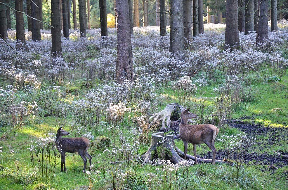 Im Sommer die Muttertiere mit ihren verspielten Kälbern; im September/Oktober dann der Höhepunkt, die Hirschbrunft.