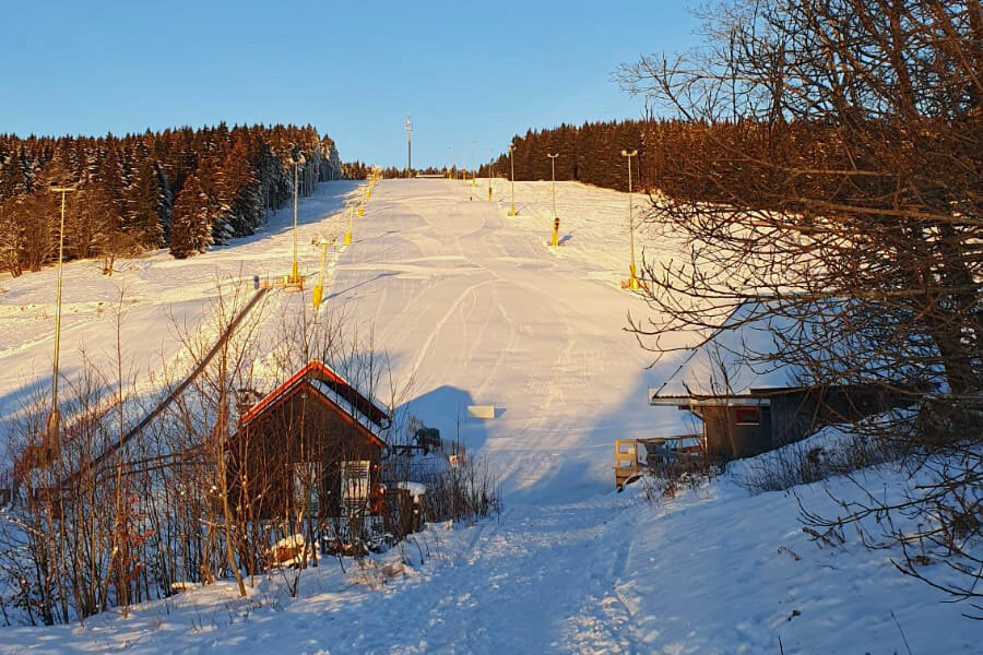Bei uns schlagen Wintersportherzen höher! Der längste Schlepplift im Thüringer Wald mit 1100 m überwindet einen Höhenunterschied von 143 m bis zur Bergstation hoch auf den 908 m hohen Eisenberg. Schmiedefeld am Rennsteig, unweit von Suhl im Osten des Thüringer Wald ist mit seinen zwei Pisten, dem Rodelland und einen Funpark ein Paradies für Familien.