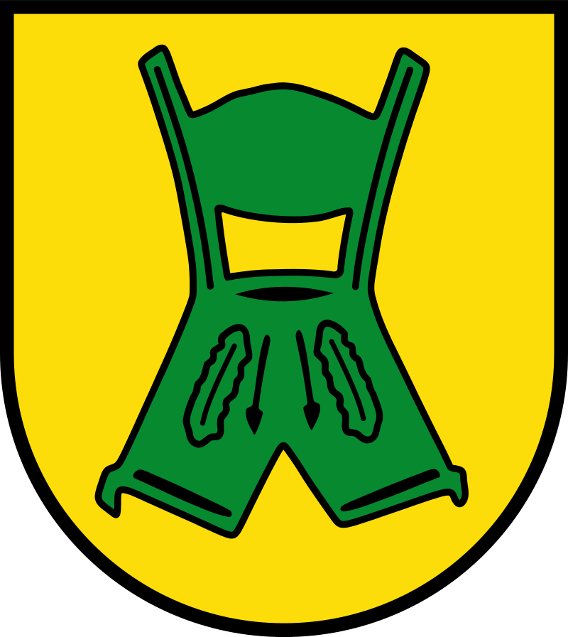 Das Wappen wurde weit nach 1287, nachdem das Kleidungsstück bekannt wurde, angefertigt. Durch die Anpassung des Ortsnamens, an die herkömmlichen Bedeutung, entstand eine Lederhose auf dem Wappen. Diese ist allerdings nicht im typischen Lederbraun, sondern in der Ortsfarbe Grün dargestellt.