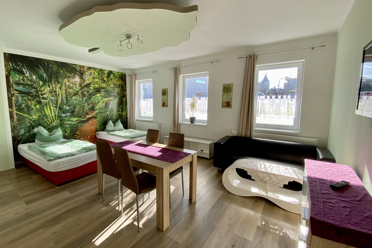 Mehr InformationenGästehaus mit mehreren Appartements für Monteure mit jeweils 2 Betten; mit Küche oder Nutzung der Gästeküche; nur wenige Minuten von der Autobahn A4 entfernt