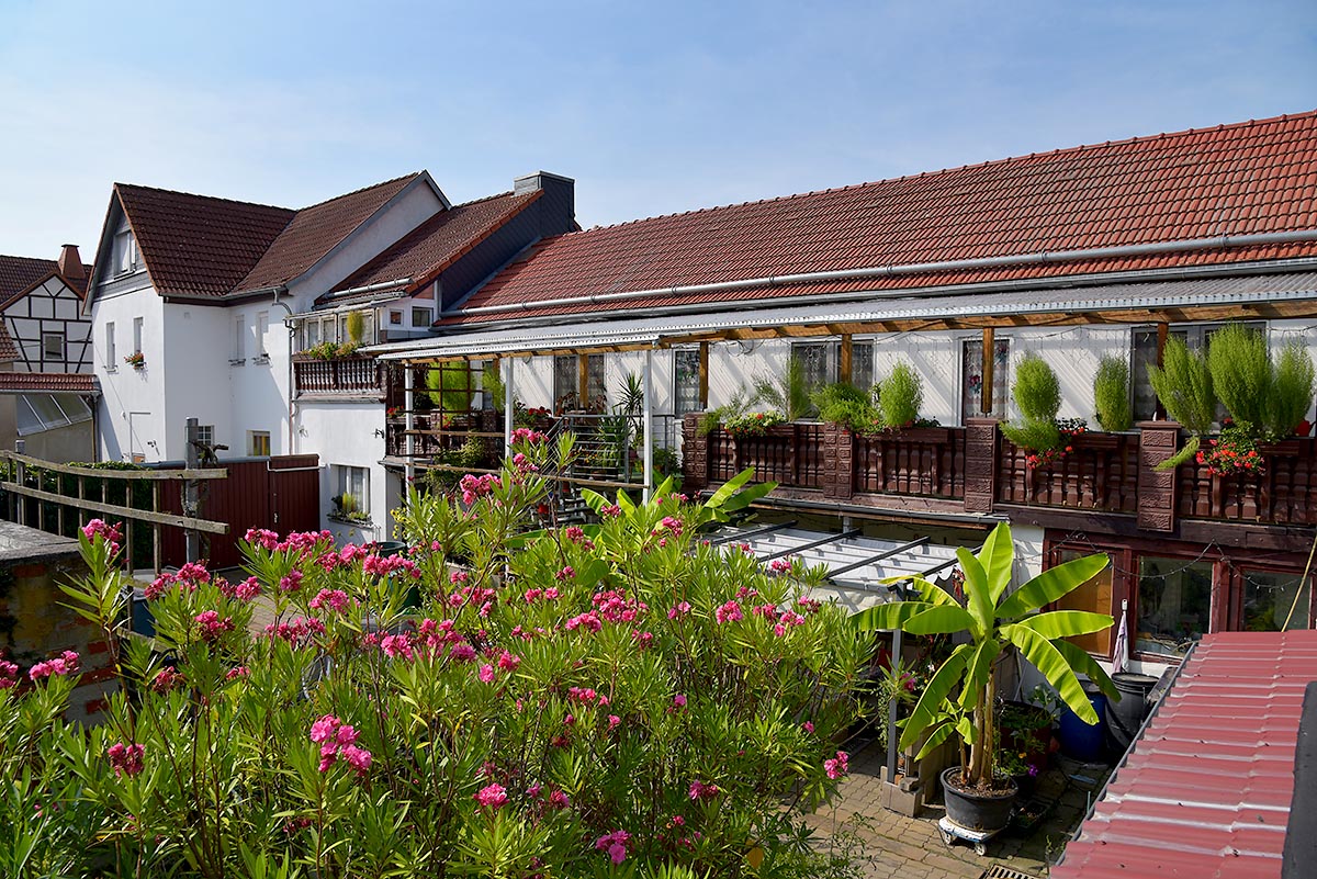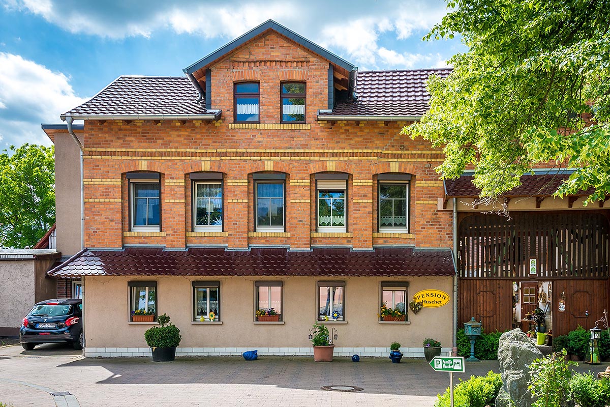Ruhig gelegene Pension im Kreis Sömmerda mit Einzel- und Doppelzimmern sowie einem Appartement; ideal für Monteure, die hier in der Nähe bei Automobilzulieferern arbeiten; Außenbereich mit überdachter Terrasse