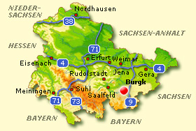 Malerisch am Ufer der Saale zwischen Bleiloch- und Hohenwarte-Stausee gelegen, wird der Ort Burgk von einer beeindruckenden Schlossanlage geprägt.