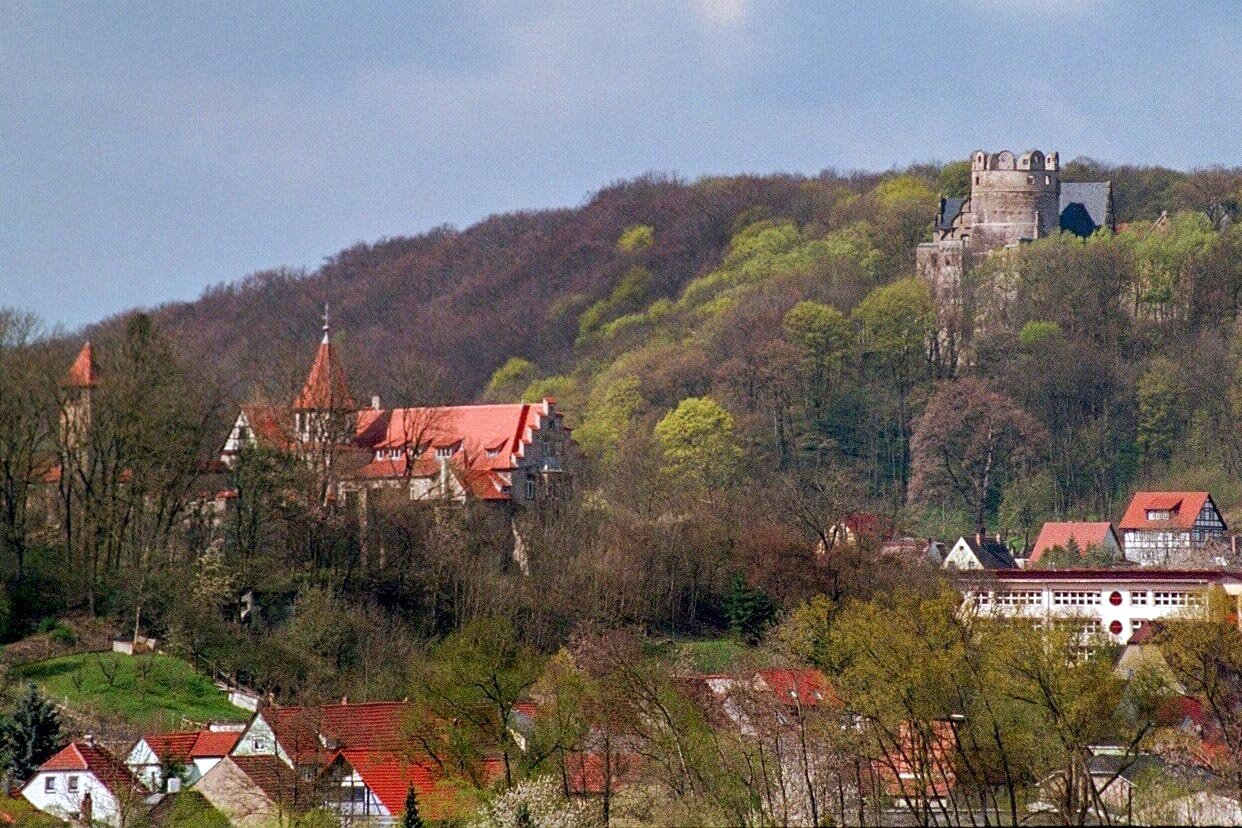 Die mächtige Ruine des Oberschlosses und die über dem rechten Ufer der Ilm thronende Niederburg sind sichtbare Wahrzeichen von Kranichfeld, gleich, von welcher Seite man in das bewaldete Tal kommt.