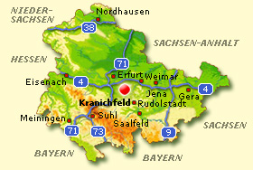 Kranichfeld ist ein idyllisch gelegenes Städtchen im Mittleren Ilmtal. Reizvolle Natur und historische Wahrzeichen laden in eine abwechslungsreiche, geschichtsträchtige Ferienregion mit vielseitigen Angeboten für Erholungs- und Bildungsurlaub ein.