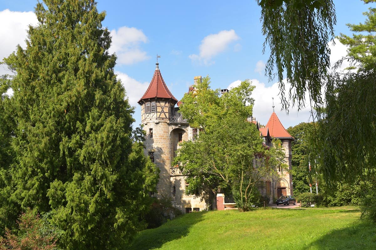 Das Schloss - privat - auf dem hohen Werraufer in unmittelbarer Nachbarschaft zur Kirche wurde 1863 in gotischer Formensprache errichtet.