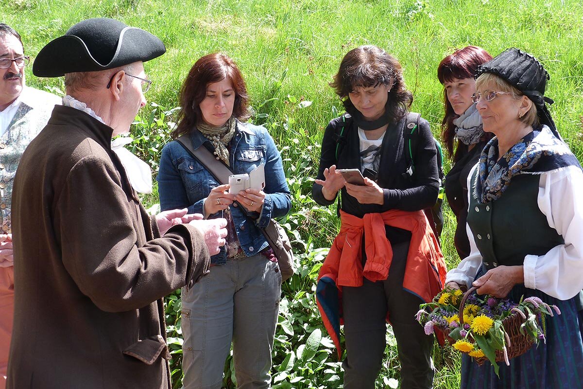 Buckelapotheker und Kräuterfrau stehen noch heute symbolisch für dieses Gewerbe und laden Sie zu Kräuterwanderungen entlang unseres Kräuterlehrpfades ein. Dort sind von Mai bis September bis zu einhundert verschiedene Heilpflanzen ausgeschildert.