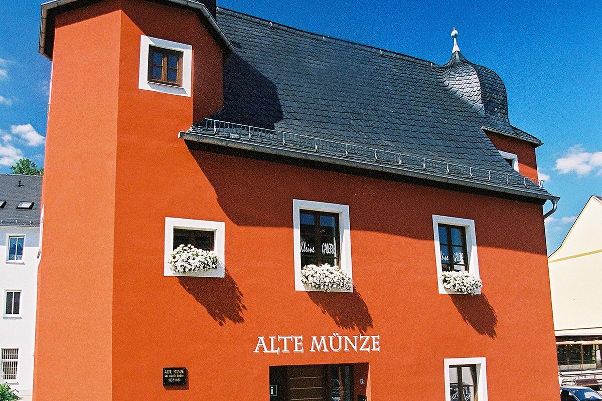 Das markanteste Gebäude der Stadt Schleiz ist die „Alte Münze“ auf dem Neumarkt, in deren Räumen sich eine Dauerausstellung der Porzellanmanufaktur Meißen befindet. Diese ist zum Gedenken an Johann Friedrich Böttger, dem Erfinder des Europäischen Porzellans, der 1682 in Schleiz geboren wurde, eingerichtet worden.