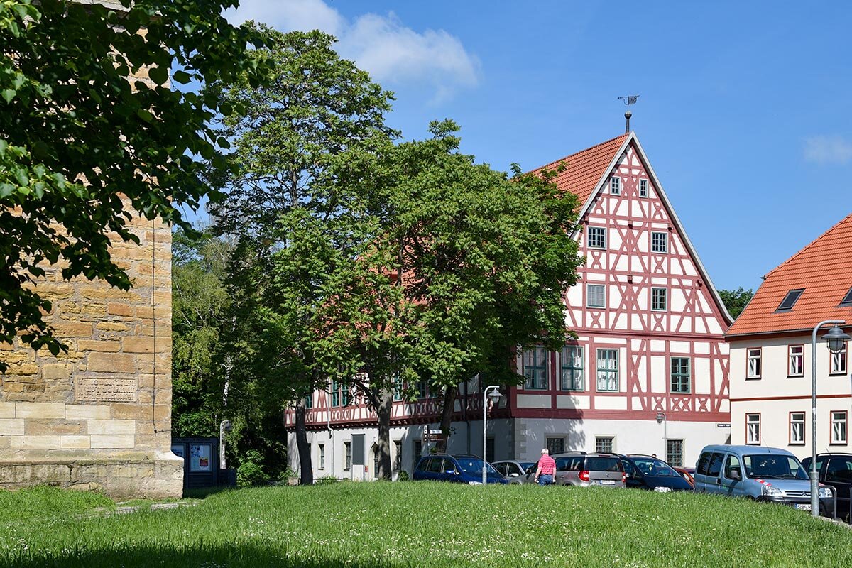 An der Nordseite des Marktes stehen unter anderem das 1589 erbaute ehemalige Amtshaus - heutiges Pfarrhaus und das Geburtshaus des Pädagogen Christian Gotthilf Salzmann, der 1744 in Sömmerda geboren wurde und dessen Wirken weit über die Grenzen seiner Vaterstadt reichte. Ihm zu Ehren errichtet man auf dem Marktplatz im Jahre 1894 ein Denkmal. Wenige Meter entfernt vom Pfarrhaus führt ein Weg auf einer alten überdachten Holzbrücke, deren Bau von den Ratsherren finanziert wurde und von der der Blick zur alten Lohmühle freigegen wird, über die Unstrut in den Stadtpark.