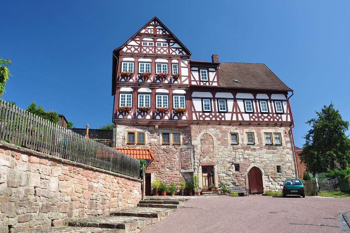 Der Maienhof (1576) wurde als Adelssitz in Erweiterung eines mittelalterlichen Wehr- und Wohnturmes errichtet. Eine Besonderheit der Fachwerkgestaltung sind die gebogenen Andreaskreuze, die diese Form erstmals in unserer Gegend auftreten.