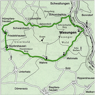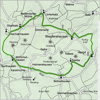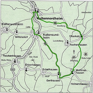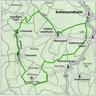 Heimatmuseum Rhönbrauerei in Kaltennordheim, "Wetzstein" Ehrensäule in Kaltenwestheim - Wehrkirche Unterweid - Fachwerkhäuser (u. a. Sternmühle) in Oberweid, Ellenbogen (814 m ü NN) - Kirchenburg, Landschaftspflege-Agrarhöfe in Kaltensundheim