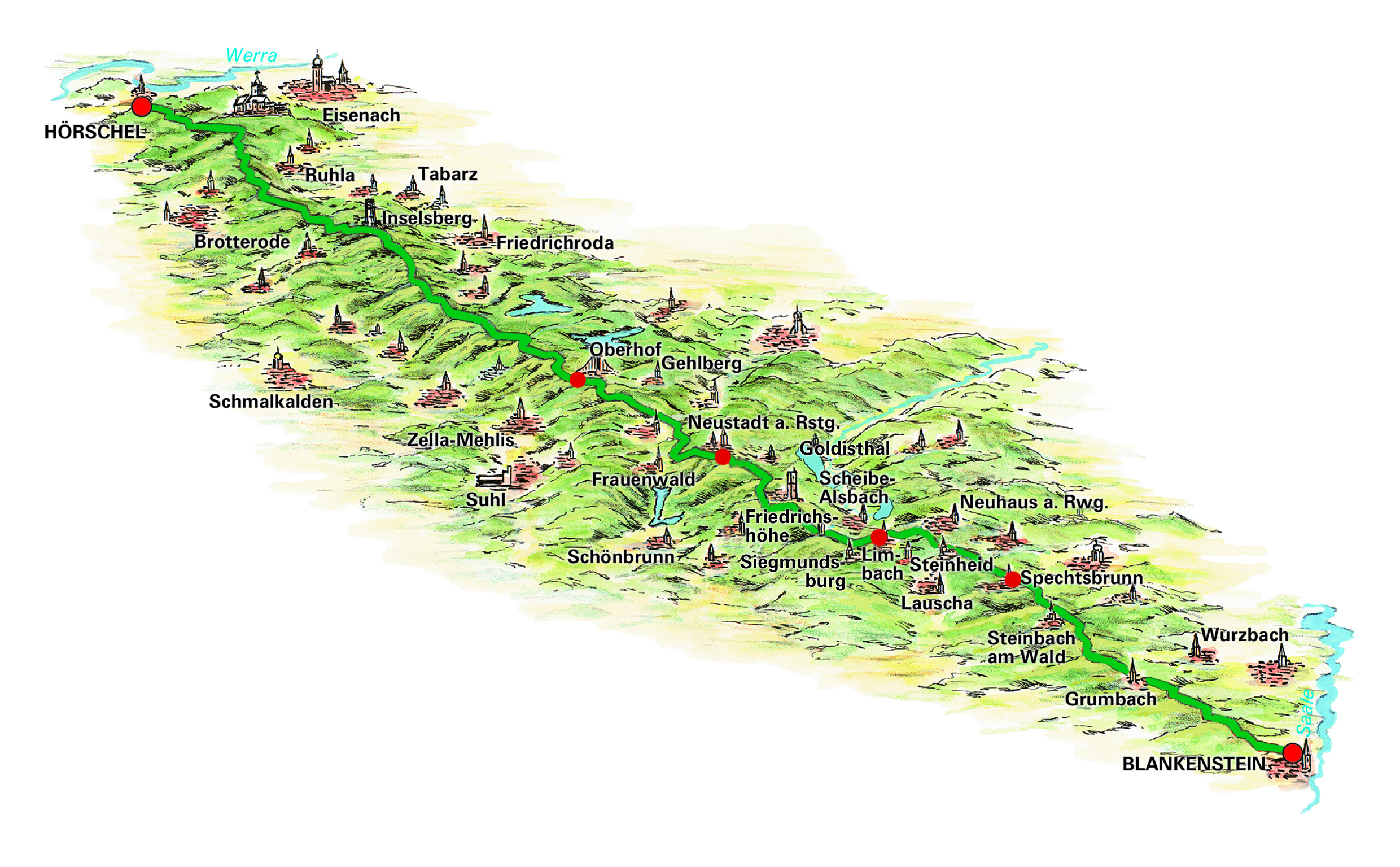 Vom Mittellauf der Werra bis zum Oberlauf der Saale zieht der Rennsteig als Höhenweg über den Kamm des Thüringer Waldes und des angrenzenden Thüringer Schiefergebirges, bis in den nördlichen Frankenwald. Der Rennsteigwanderer begegnet an vielen Stellen seiner Wanderung der Geschichte dieser Landschaft. Er lernt Flur- und Forstorte mit ihren überlieferten Namen, Grenzsteine mit den den Hoheitszeichen vergangener Mächte, geschichtliche Schauplätze und bauliche Denkmale vergangener Zeiten kennen.