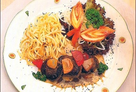 Die Pferderouladen mit Thüringer Klößen gehören zu den beliebtesten Essen im Thüringer Landhotel "Edelhof", welches dieser Rezept zur Verfügung stellte.