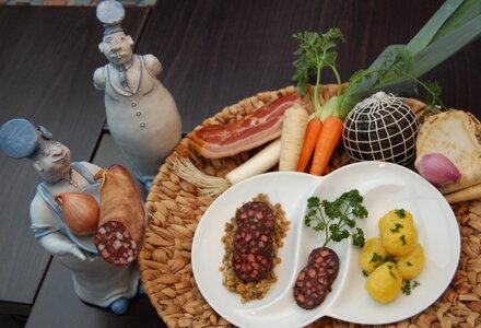 Haben Sie Lust auf die deftige Thüringer Küche? Auf typische Nationalgerichte wie Thüringer Klöße aus geriebenen rohen Kartoffeln mit gefüllten Weißbrotwürfeln? Auf eine schmackhafte Roulade oder gebratene Entenkeule mit Rotkohl? Auf Thüringer Bratwürste oder Rostbrät`l, der Schlemmerei für zwischendurch und auf urigen Grillabenden. Oder auf einen Zwiebelkuchen, ganz nach alten Hausrezepten zubereitet.