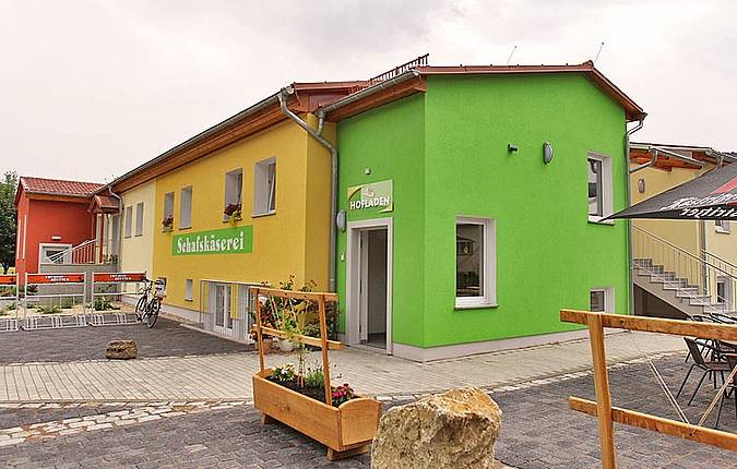 Unser Hofladen bietet Käse, Joghurt und Eis verschiedenster Art aus 100% Schafmilch an, hergestellt in der hauseigenen Käserei, sowie weitere Thüringer Spezialitäten wie: Tee, Gewürze, Liköre, Wein, Pflegeprodukte sowie Fleisch vom Rind oder Lamm aus eigener Zucht. Im Hofcafé kehren Wanderer, Radfahrer und Gäste gerne ein.