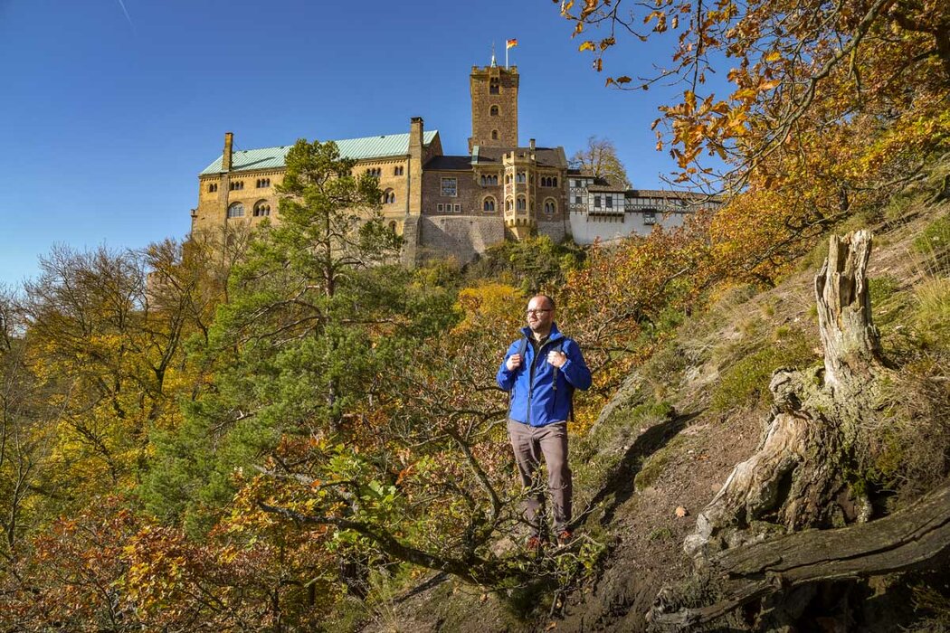 Eisenach ist sehr unkompliziert über seine Anbindung an die A4 zu erreichen. Dort angekommen, erwartet Reisende eine gemütliche Innenstadt mit verschiedenen historischen Bauwerken, wie dem Nikolaitor oder dem Stadtschloss am Markt. Die bekannteste Sehenswürdigkeit Eisenachs ist jedoch die Wartburg, die im Süden der Stadt und auf einem der Berge darüber thront. 1067 erbaut, beherbergte sie im Laufe der Jahrhunderte historische Persönlichkeiten wie Martin Luther, der hier das Neue Testament ins Deutsche übersetzte, Johann Wolfgang von Goethe, Fritz Erbe oder die Heilige Elisabeth von Thüringen. Umliegende Wanderwege, etwa durch die mystische Drachenschlucht oder zur Sängerwiese, laden zu einem Spaziergang ein.