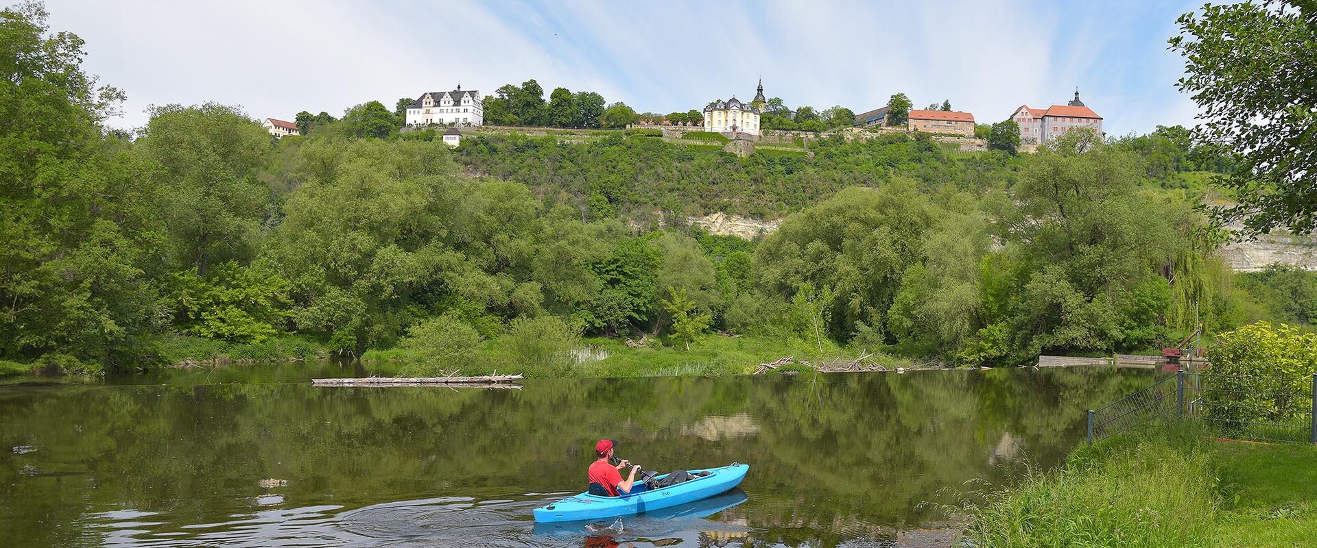 Die Ferienwohnung bietet Platz für bis zu 7 Personen und befindet sich im Erdgeschoss eines Zweifamilienhauses in einer ruhigen Wohnsiedlung direkt am Waldrand, etwa 1 km von der Saale entfernt. Sie eignet sich ideal als Ausgangspunkt für Spaziergänge, Wanderungen, Radtouren und Bootstouren.