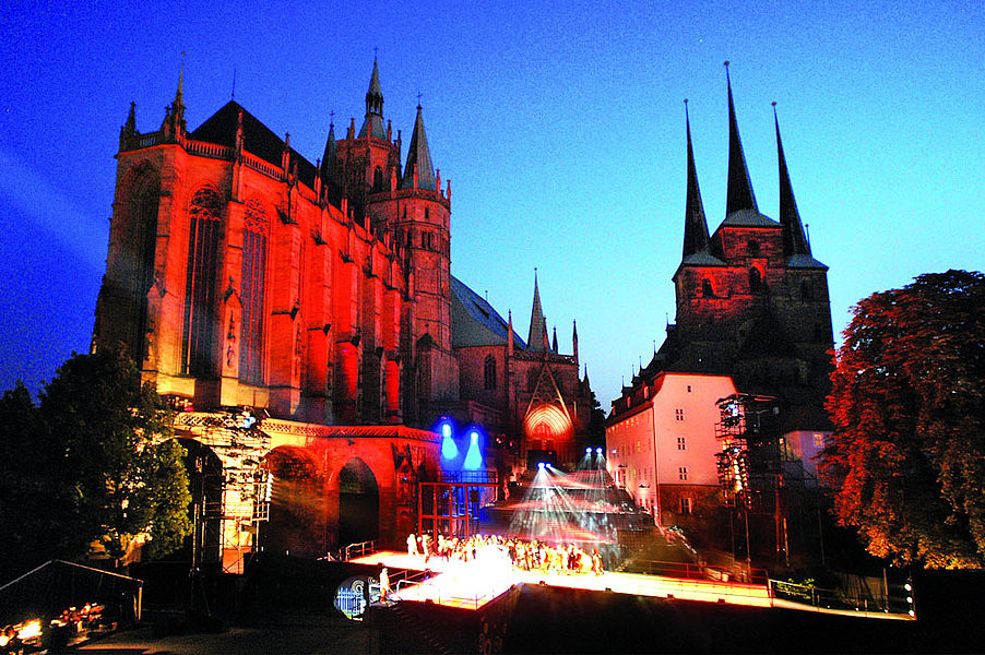 Während der DomStufen-Festspiele verwandeln sich die 70 Stufen des Dombergs zur spektakulären Open-Air Festspielbühne. Die Domstufen zwischen dem prächtigen Kirchenbauensemble von Mariendom und St. Severi in Erfurt werden alljährlich im Sommer zu einer der schönsten Festivalbühnen der Welt. Die jährlich wechselnden Opern zogen bereits mehrere hunderttausend Gäste aus der ganzen Welt an.