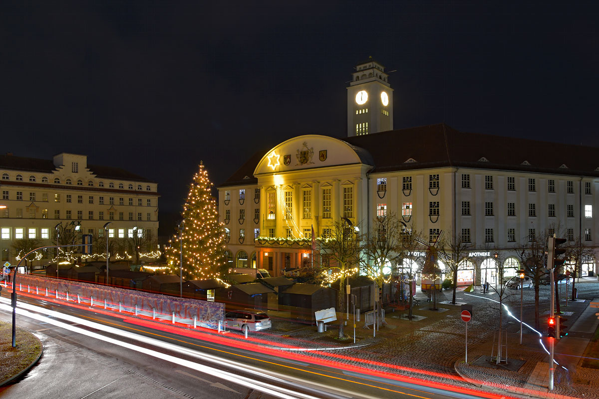 Der Markt mit dem klassizistischen Rathaus bietet besonders zur Weihnachtszeit einen einzigartigen Anblick.