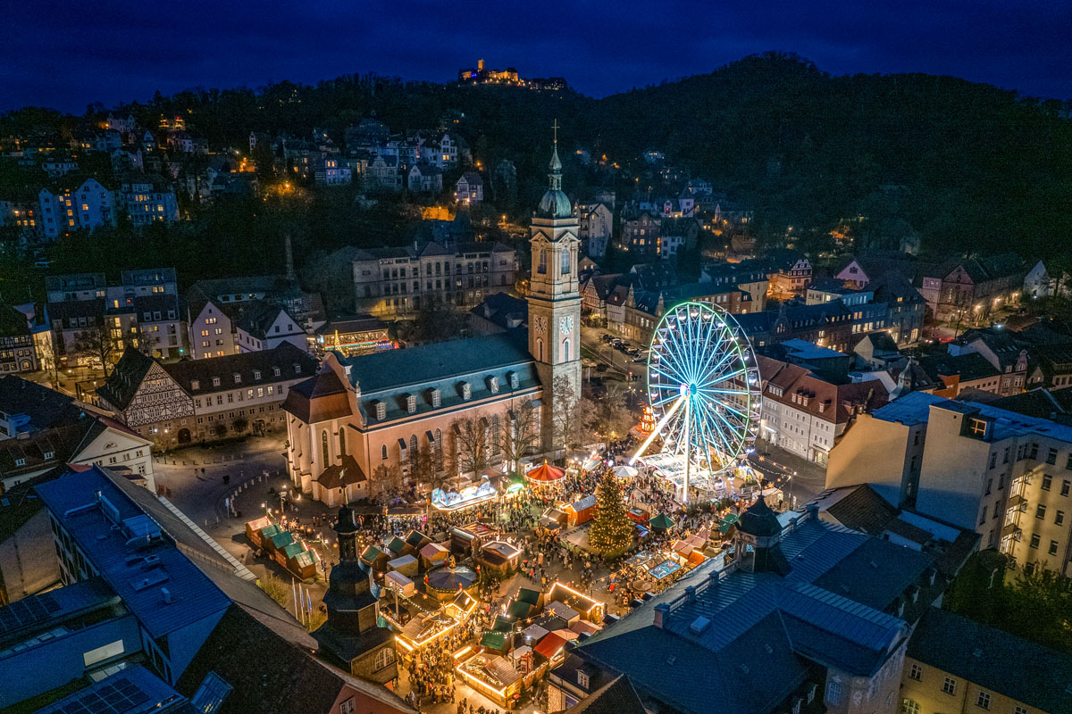 Wenn bei anderen die Lichter bereits ausgeschaltet werden, geht es bei uns erst so richtig los! Die Stadt Eisenberg freut sich auf Ihren Besuch zum Nacht-Weihnachtsmarkt 2024. Im historischen Ambiente der Eisenberger Innenstadt dürfen Sie sich auf ein abwechslungsreiches Programm für die ganze Familie und viele Leckereien freuen! Das Besondere: Unser Weihnachtsmarkt hat bis in die späten Nachstunden für Sie geöffnet!