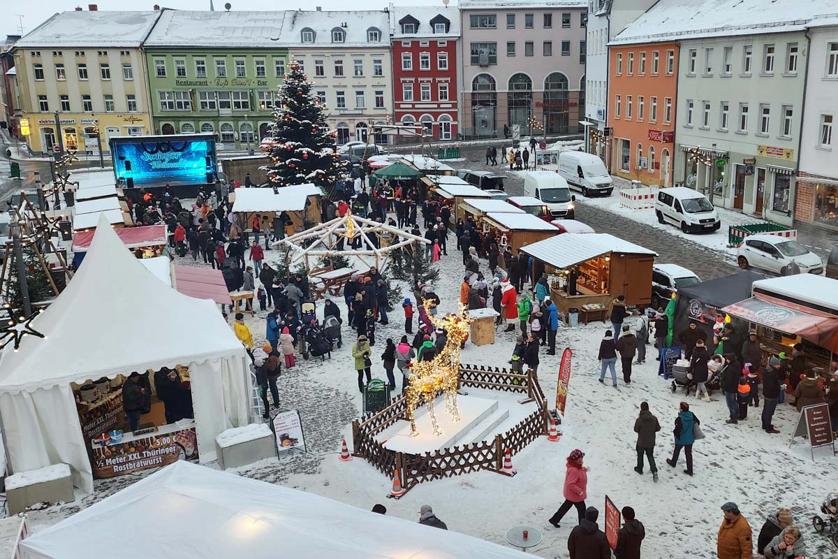 Am zweiten Adventwochenende findet in Mitten dieser Kulisse der Zeulenrodaer Weihnachtsmarkt statt. Neben Jahreszeittypischen Getränken und Speisen bieten auch verschiedene Händler ihre Waren an. Der Weihnachtsmann wird es sich ebenfalls nicht nehmen lassen uns wieder zu besuchen, um Kinderaugen zum Glänzen zu bringen und zu seiner Weihnachtsmannsprechstundeden Wünschen der Kinder zu lauschen.