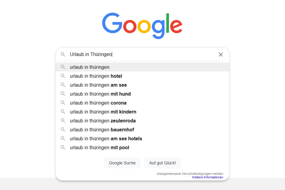 Das Urlaubsportal Thüringen.info rankt bei vielen Suchbegriffen rund um "Urlaub in Thüringen" bei Google auf Seite 1 und zählt hierdurch zwischen 1,5 bis 2,0 Millionen Webseitenbesucher jährlich. Unterkünfte, die hier werben werden von potentiellen Urlaubsgästen auch gefunden.