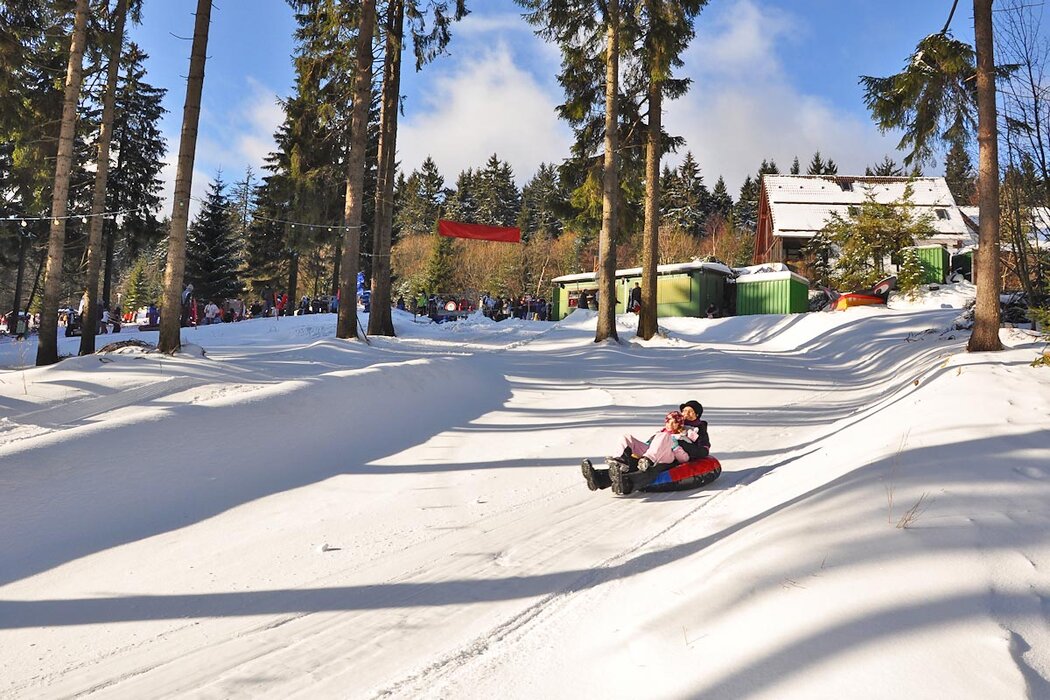 Rutschen ist etwas für Kinder? Nicht in Siegmundsburg sowie in Oberhof (Wintersportgebiet "Alte Golfwiese")! Hier treffen sich Groß und Klein zum gemeinsamen Snowtubing. Spaß und Action sind garantiert. Mit der Unterstützung von robusten Gummireifen machen sich die Besucher der Tubingbahn in den Wintermonaten zu einer außergewöhnlichen Rutschpartie auf. Auf einer etwa 250 Meter langen Bahn fahren sie mit rasanten Geschwindigkeiten den Berg hinab. Ein Spaß für die ganze Familie, der jährlich hunderte Besucher in das Gebiet lockt. Besonders an den Wochenenden macht das Snowtubing noch mehr Freude, denn samstags sorgt der Flutlichtbetrieb für ein stimmungsvolles Ambiente.